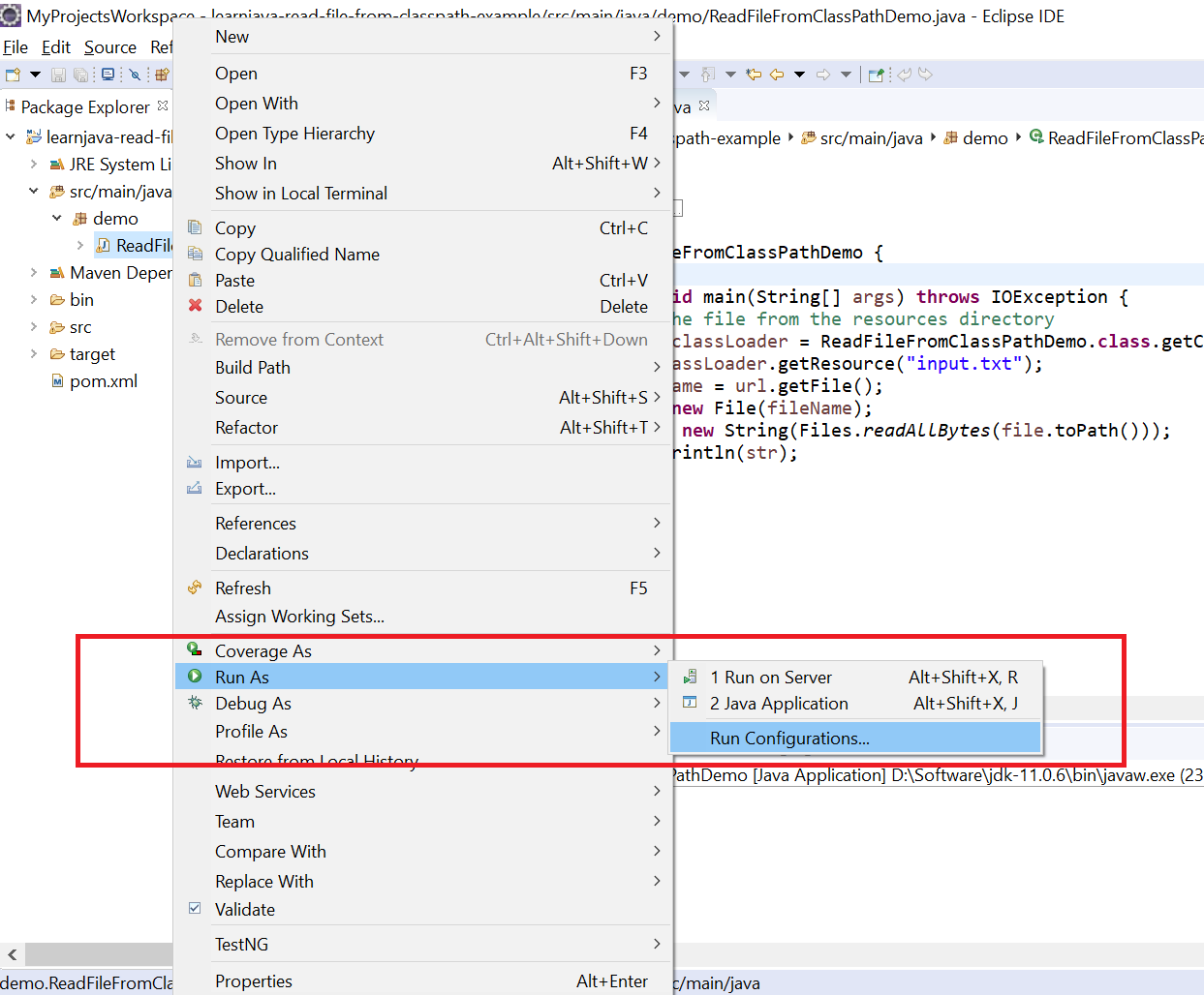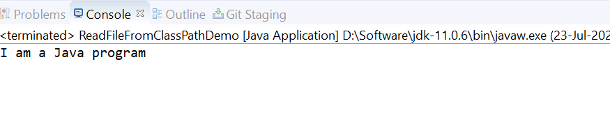 So, in this article, we saw how to read a file on the classpath via Java. We also saw how to run the code in Eclipse.
