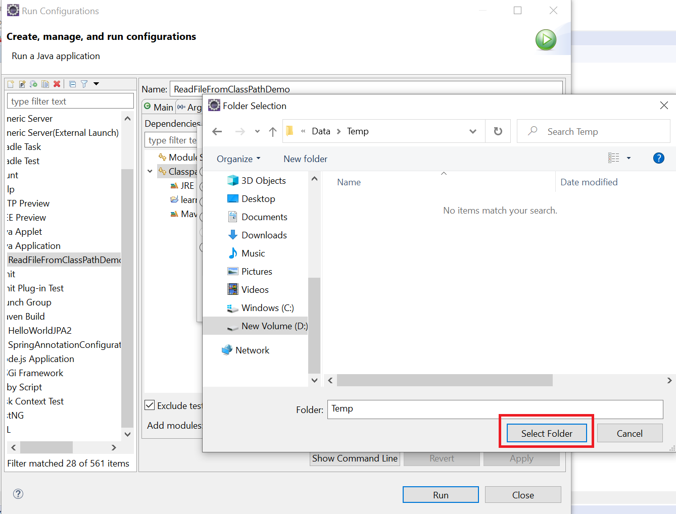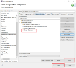 Step 5 - Verify that the folder is added to the classpath. Click on Apply and Run: