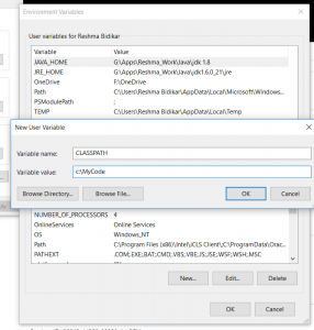 If there is no PATH set, click on new and type the following (I have specified the path the folder where my .class files are present, you need to specify the appropriate path on your computer):