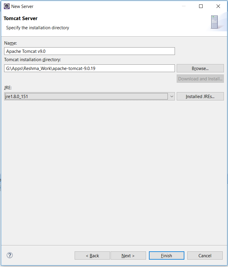 Step 9 - Click Next. Select Tomcat installation directory and JRE 1.8.