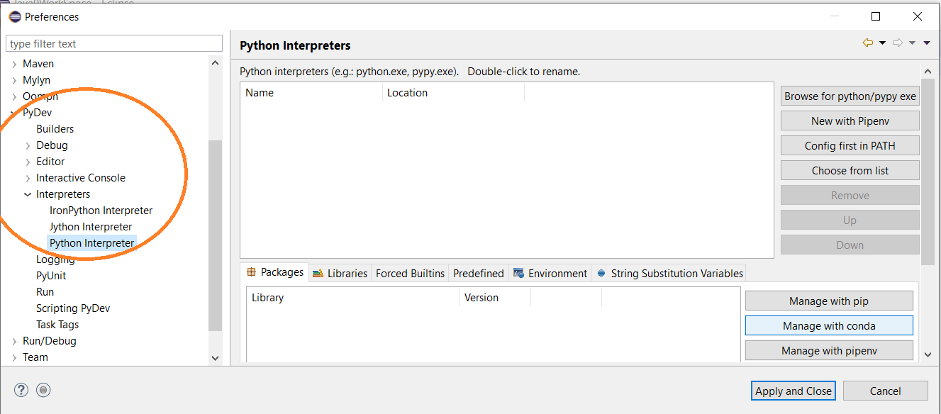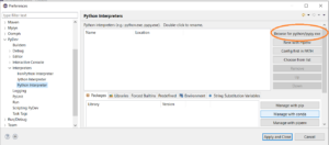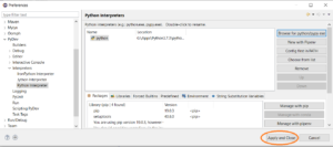 Expand Pydev –> Interpreters and click on Python interpreter: