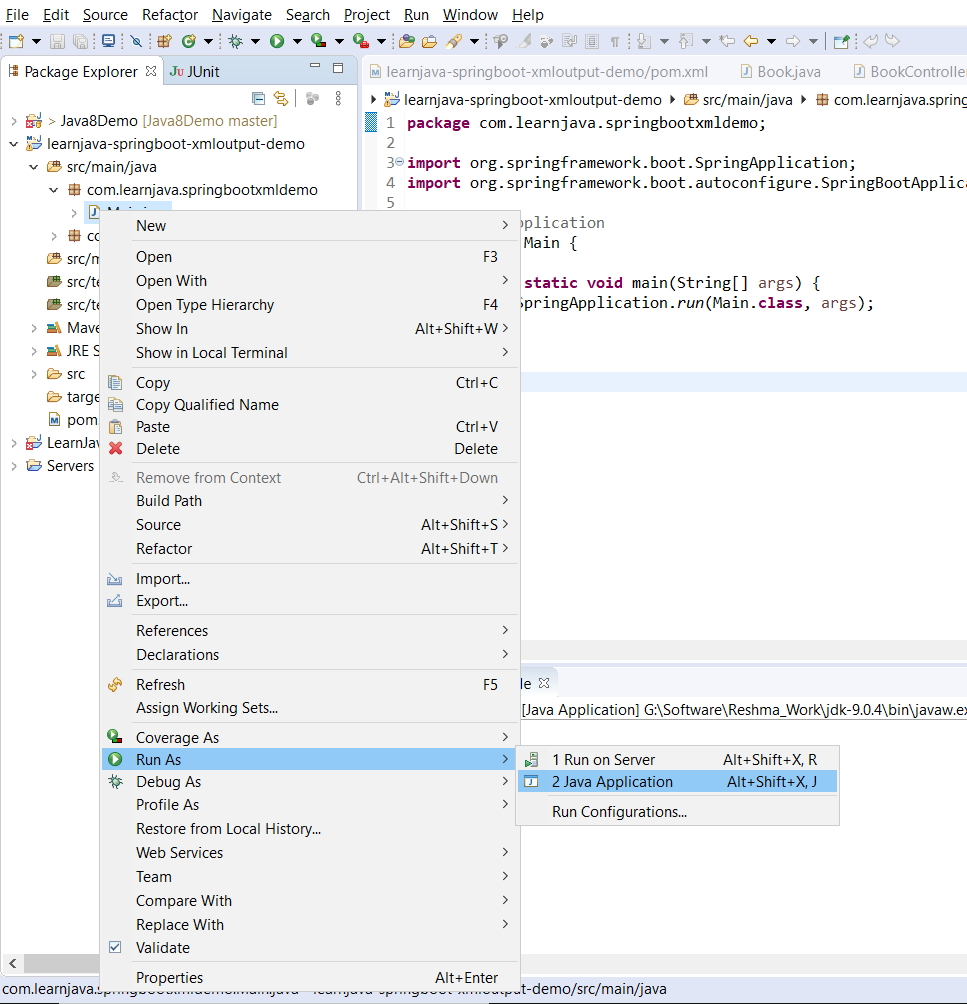 Step 6 - Run Main.java as a Java application as shown below: