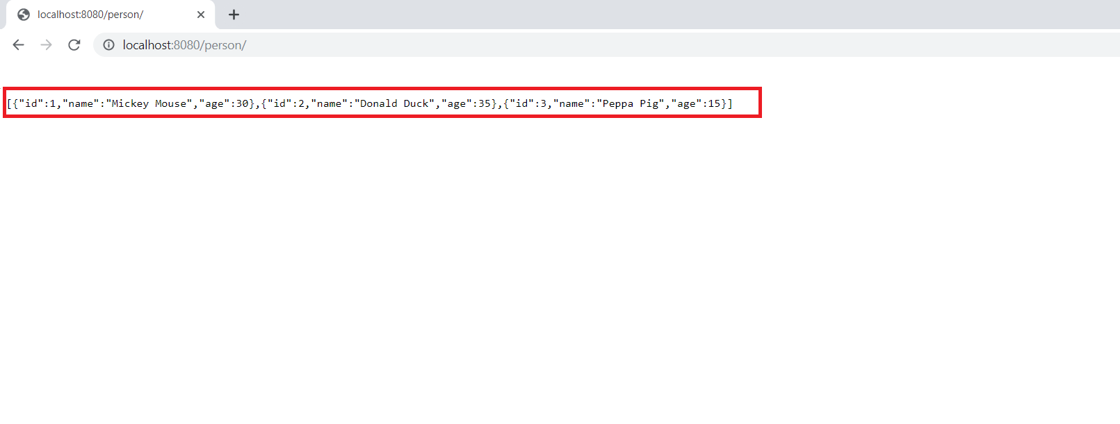 This returns all Person objects. A real-world application would query a database and return the Person objects. This code simply returns a List of Person objects.