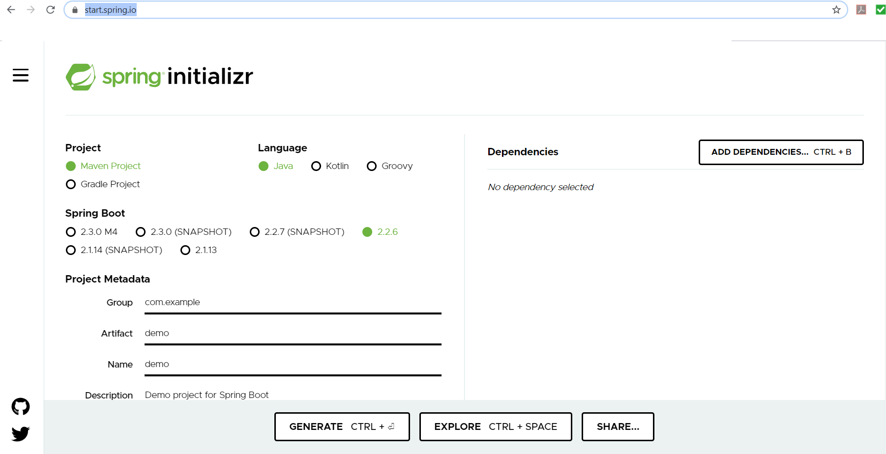 Step 1 - Go to https://start.spring.io/. You will see a screen as follows: