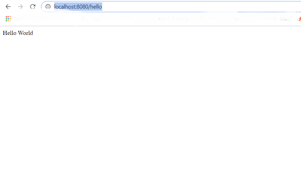 Step 5 - Open a browser window and type “http://localhost:8080/hello”. This displays the following:
