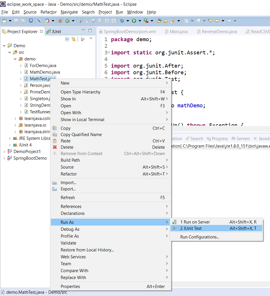 If you are using an IDE like Eclipse, you do not need the TestRunner class. You can directly right-click on the test case class and run the JUnit test as follows: