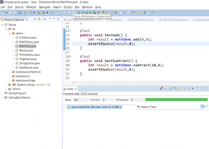 testAdd - This method tests the add method in the MathDemo class. It invokes the add method using two numbers. It then uses the assertEquals method to check if the actual result is the same as the expected result. If the result is correct, the test case is said to have passed, otherwise the test case fails. So now, human intervention is no longer needed, if the code is functioning properly, the test case passes, otherwise the test case fails.
